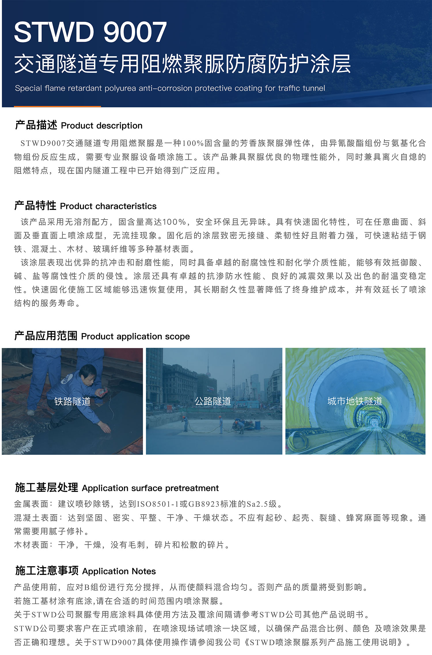 STWD9007交通隧道专用阻燃聚脲防腐防护涂层