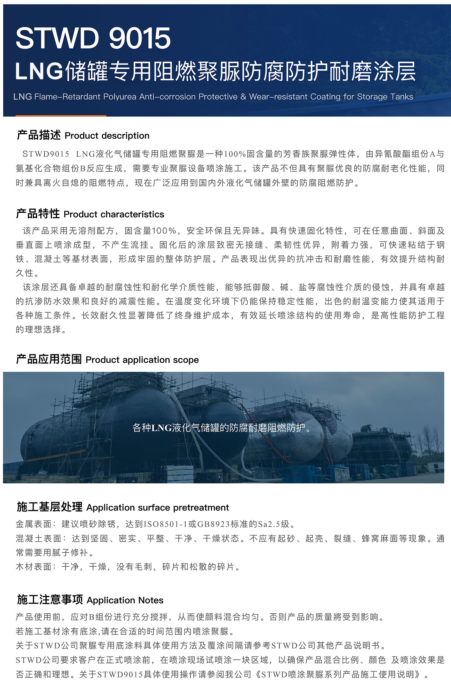 STWD9015 LNG储罐专用阻燃聚脲防腐防护耐磨涂层