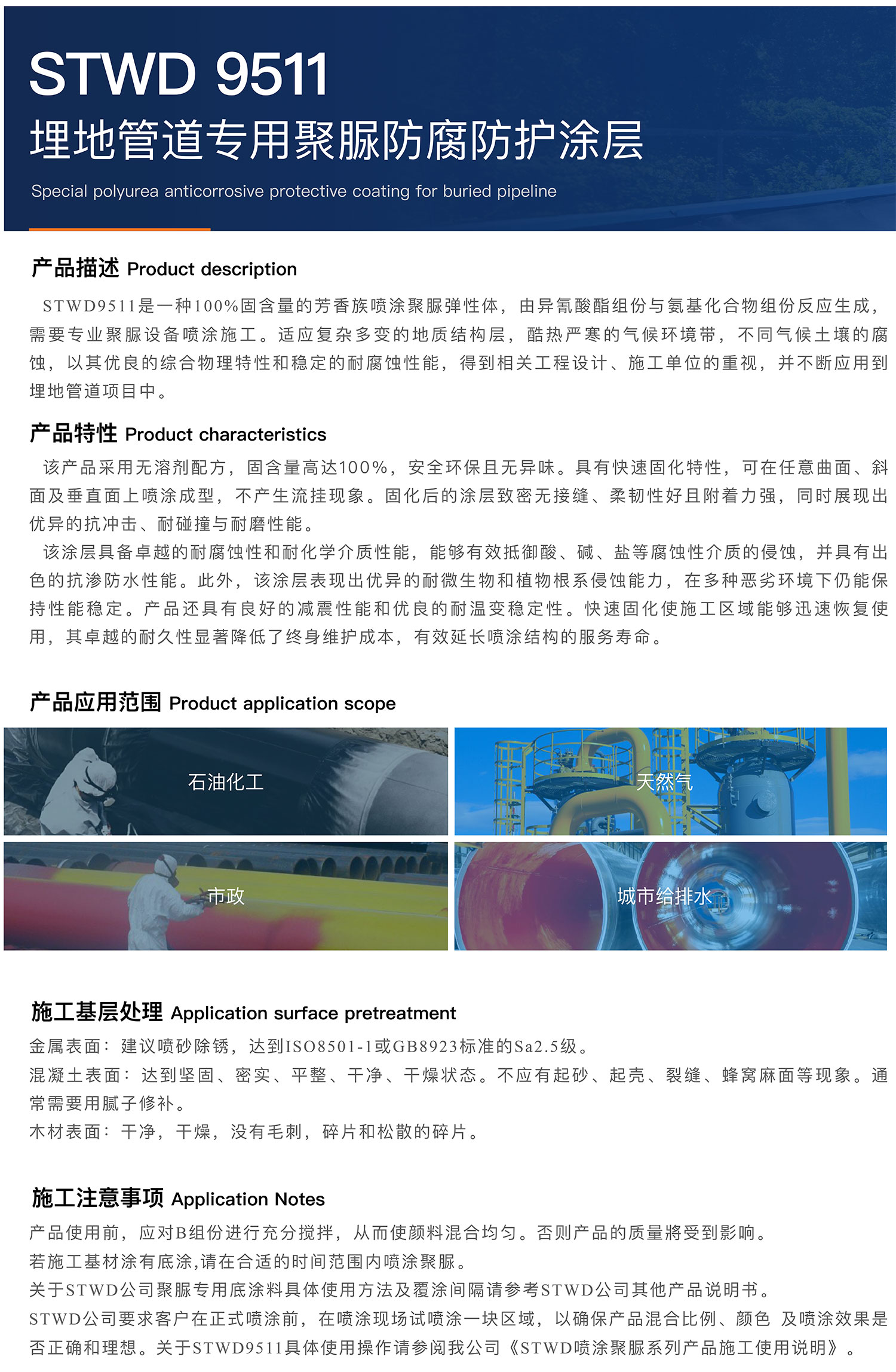STWD9511埋地管道专用聚脲防腐防护涂层