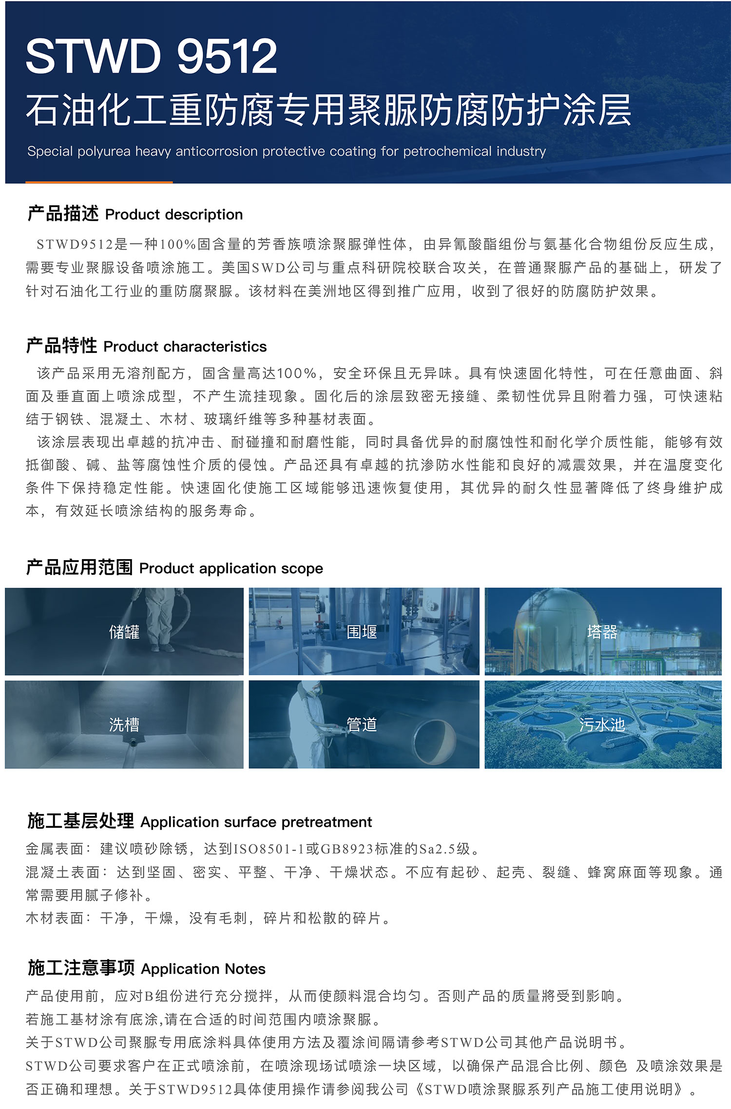 STWD9512石油化工重防腐专用聚脲防腐防护涂层