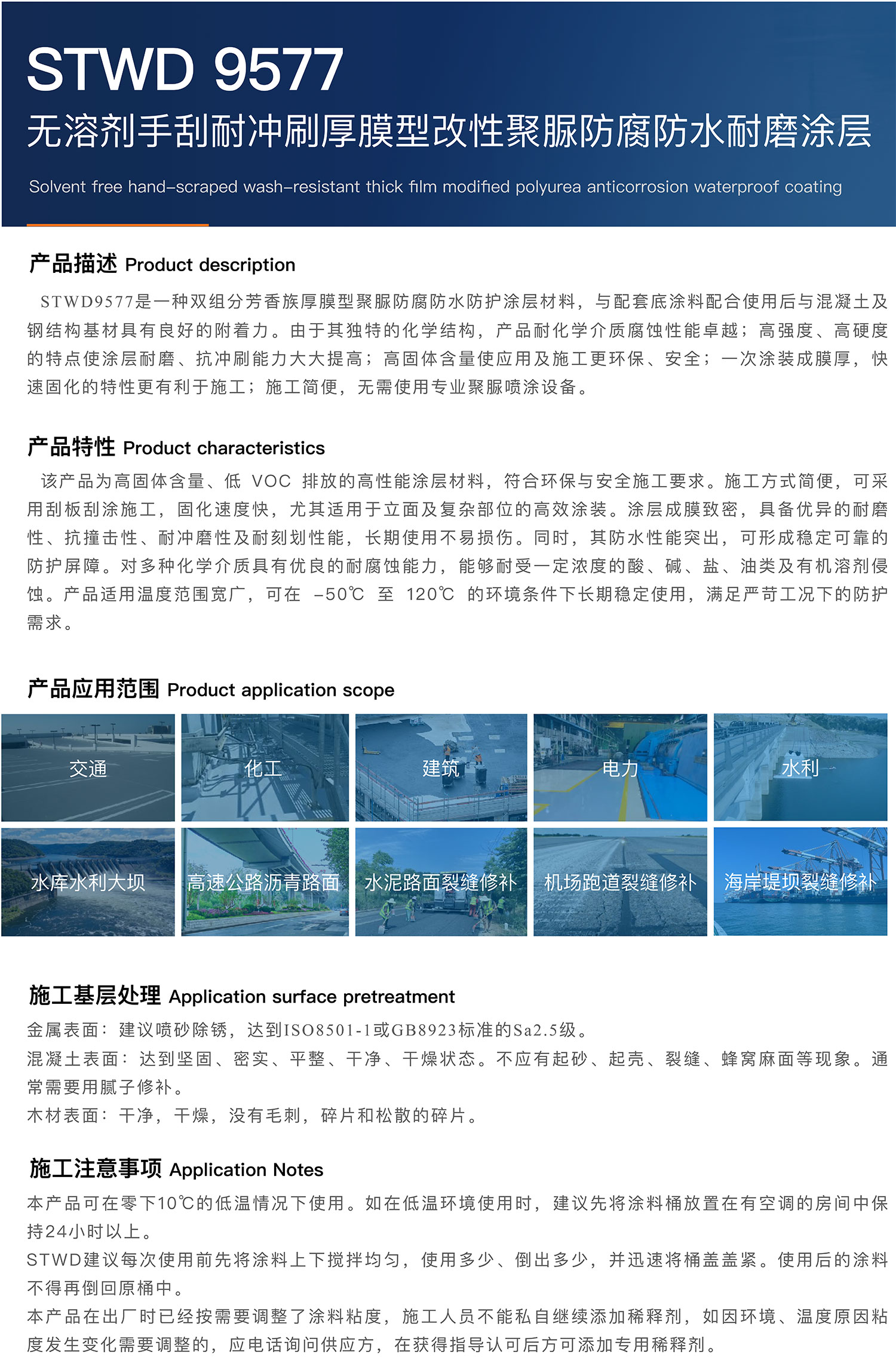 STWD9577无溶剂手刮耐冲刷厚膜型改性聚脲防腐防水耐磨涂层